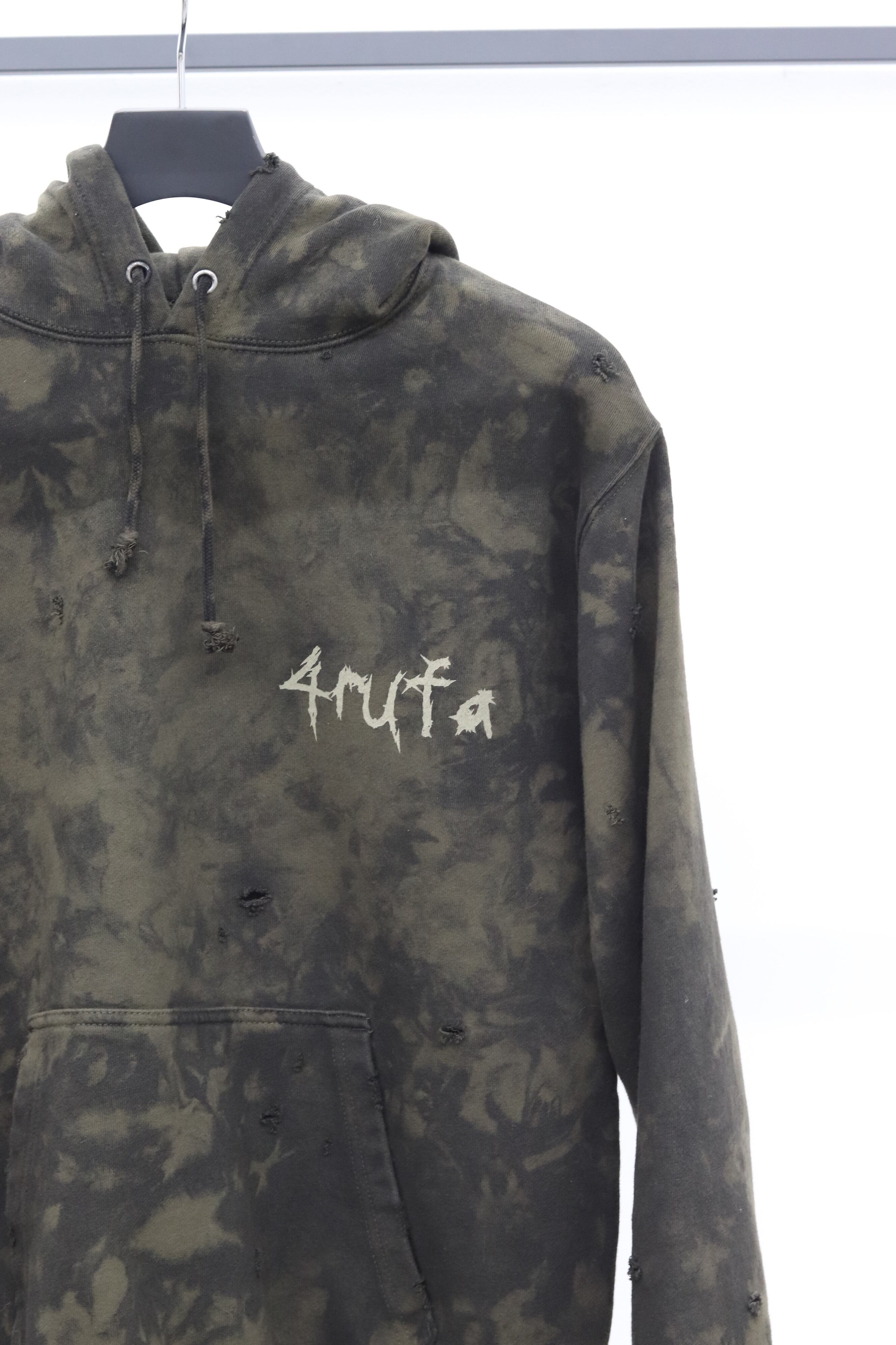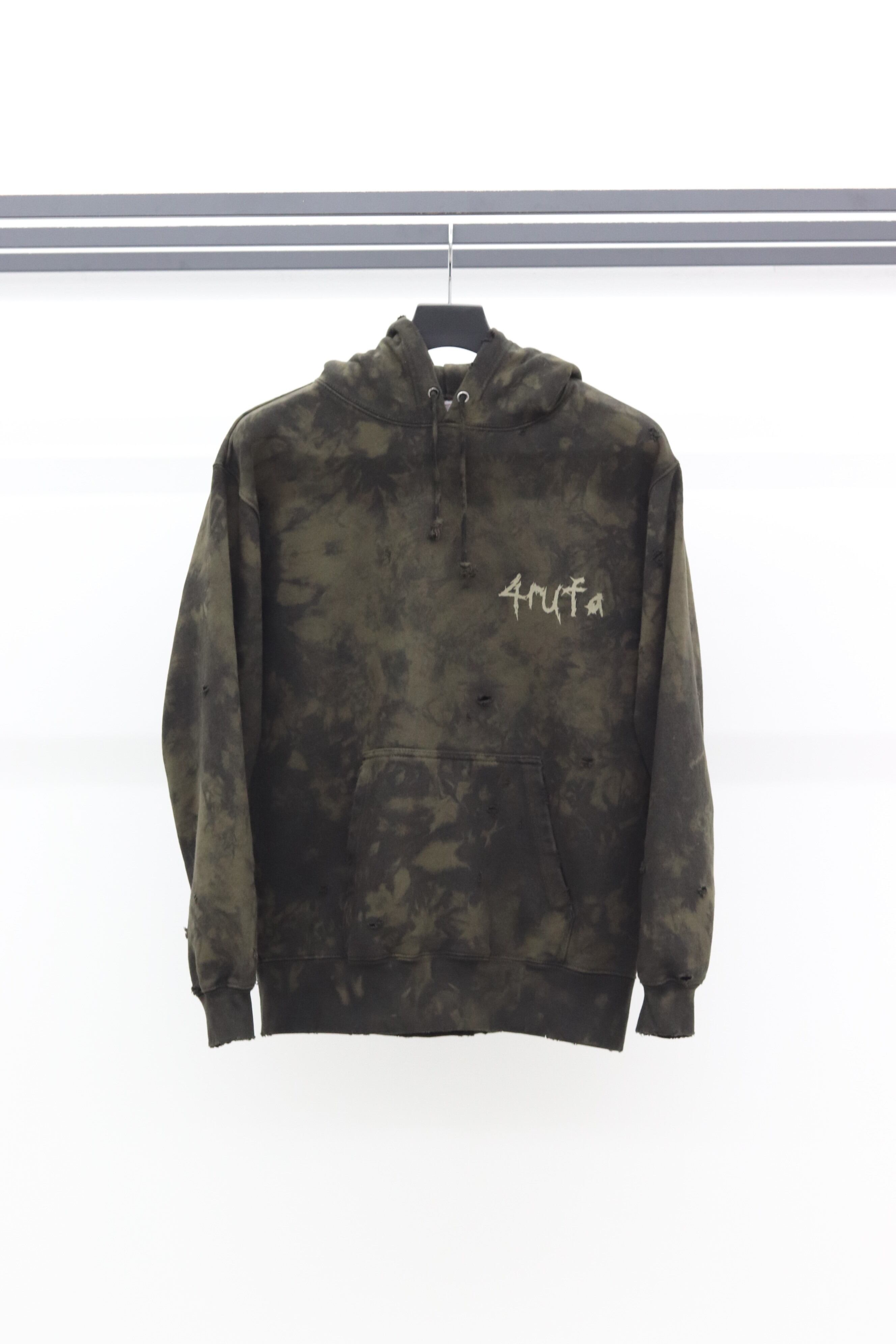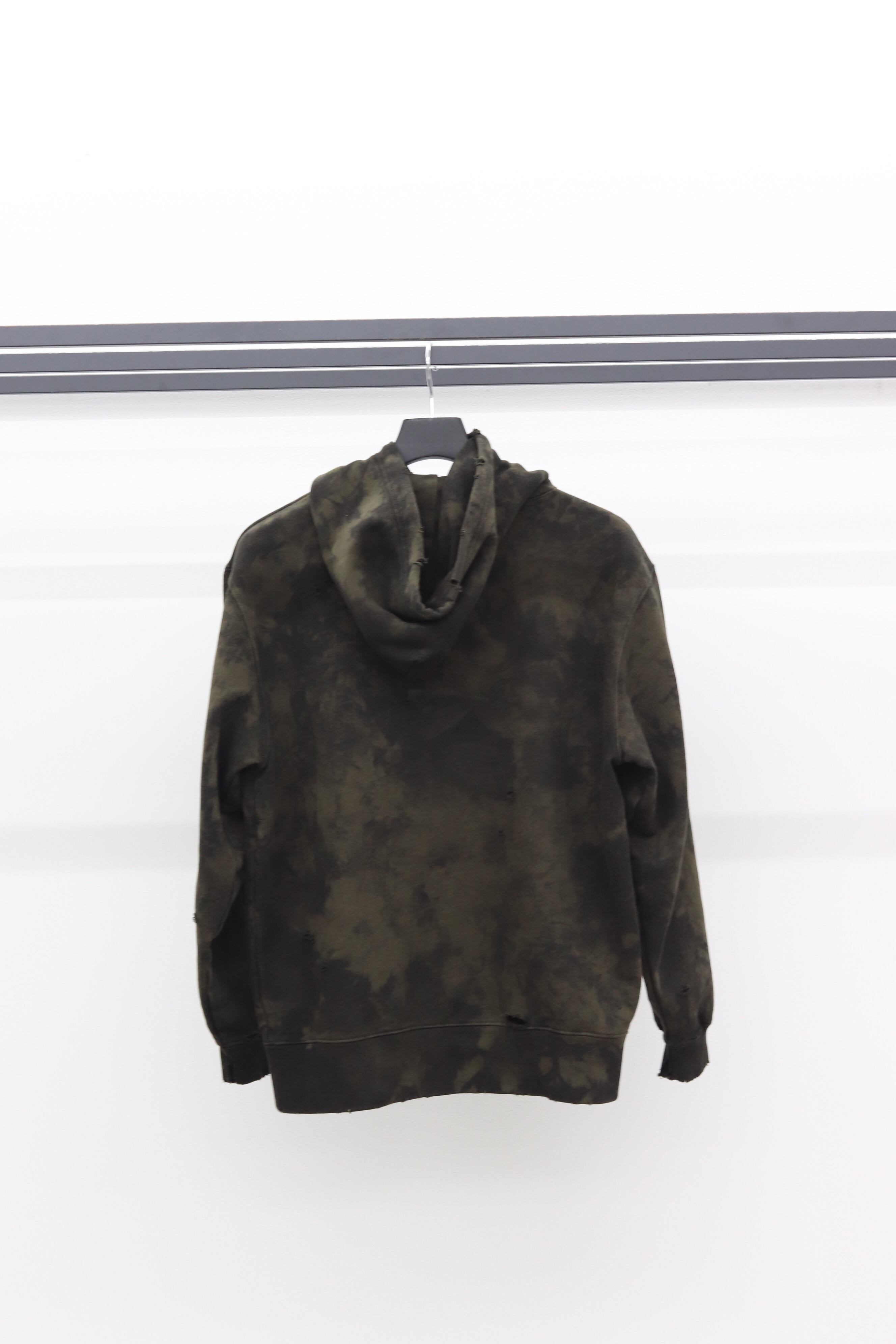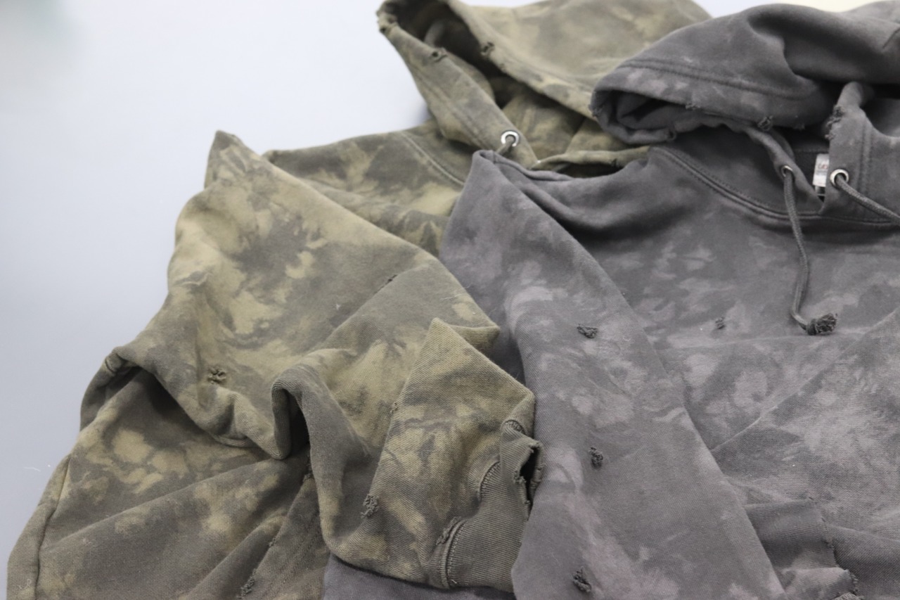 それぞれランダムに染められるムラ染とダメージ感を演出してくれるグラインダー加工を施したフーディー。